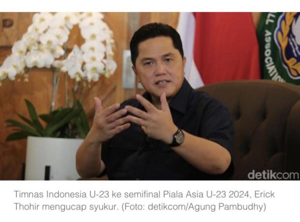 4月26日讯 在印尼通过点球大战淘汰韩国晋级U23亚洲杯半决赛后,印尼足协主席托希尔对于印尼国奥队取得的这一成就表达了他的感谢。