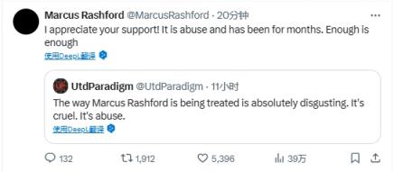 04月26日讯 今日曼联球星拉什福德转发球迷支持自己的言论,并发声。